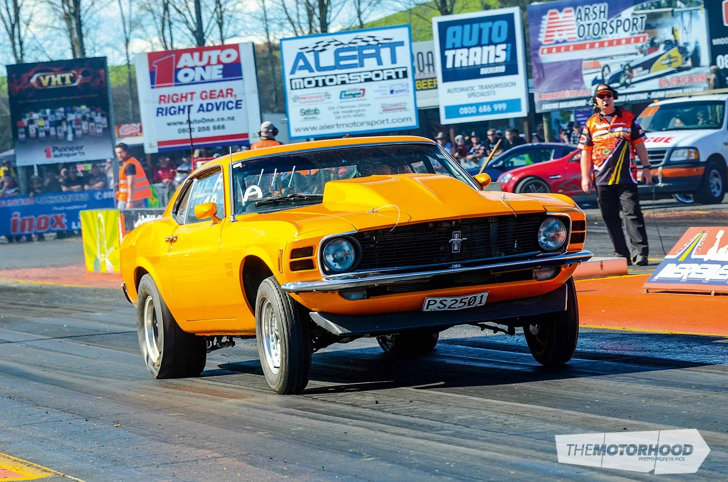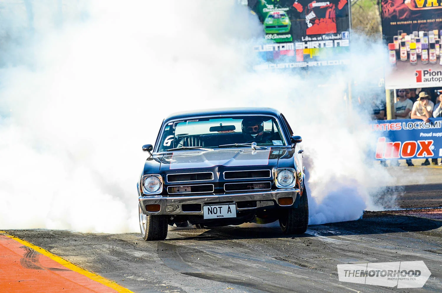 The American Top 8 Shootout was just as tough, and, even with Reece Fish out, there were still some serious street cars waiting to do battle. Bruce Cox was first, with the easiest win of round one, and Mike Kitson also made it through with his immaculate and ridiculously fast two-ton 1963 Galaxie. Rob McBride pushed his 604ci (that’s 9.9-litre in today’s money)-powered Cuda to the only nine-second pass of the round, and Craig Wall went through with a mid 10 after Christchurch’s Daniel Southall ran out of nitrous as he launched, flat spotting and missing his way to an 11.11-second pass, well off the 9.7s he had been running earlier.