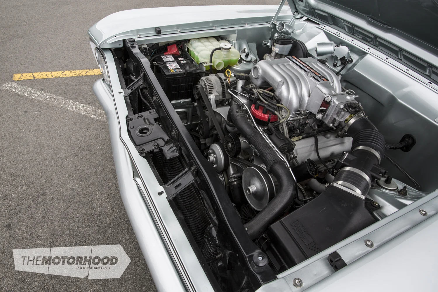 - Engine: Ford five-litre V8, Falcon ED XR8 Sprint engine, cast GT40 heads, roller camshaft, aftermarket AFM (air flow meter), Falcon EF fuel pump, factory XR8 ignition, Coby headers, three-inch exhaust, Flowmaster mufflers, factory XR8 radiator, factory XR8 ECU