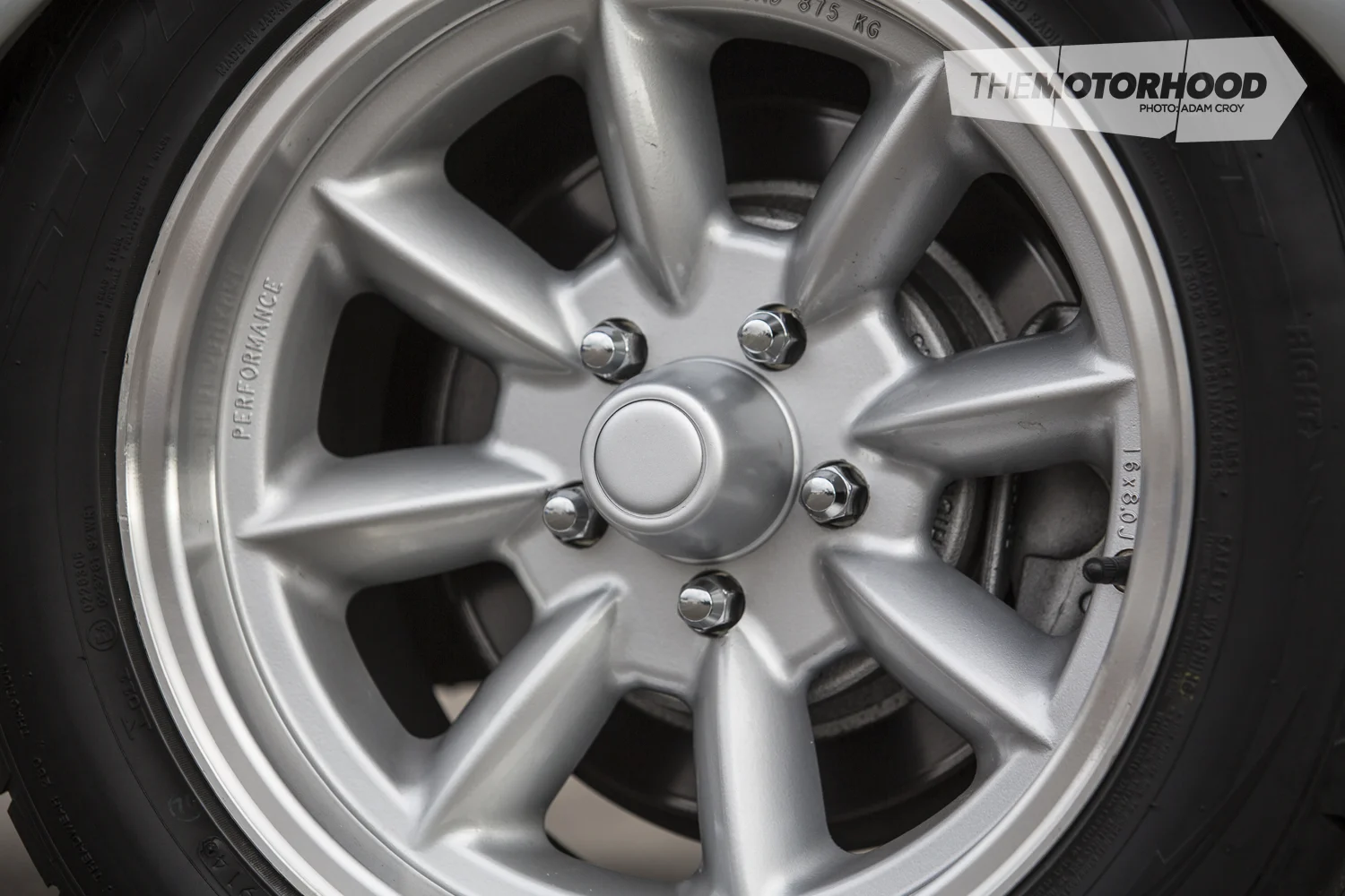 “We wanted a good suspension travel while having a low stance, which cut out the idea of big diameter wheels,” Andy explains. “The Superlites got the tick, as they were a cool wheel of the era.”