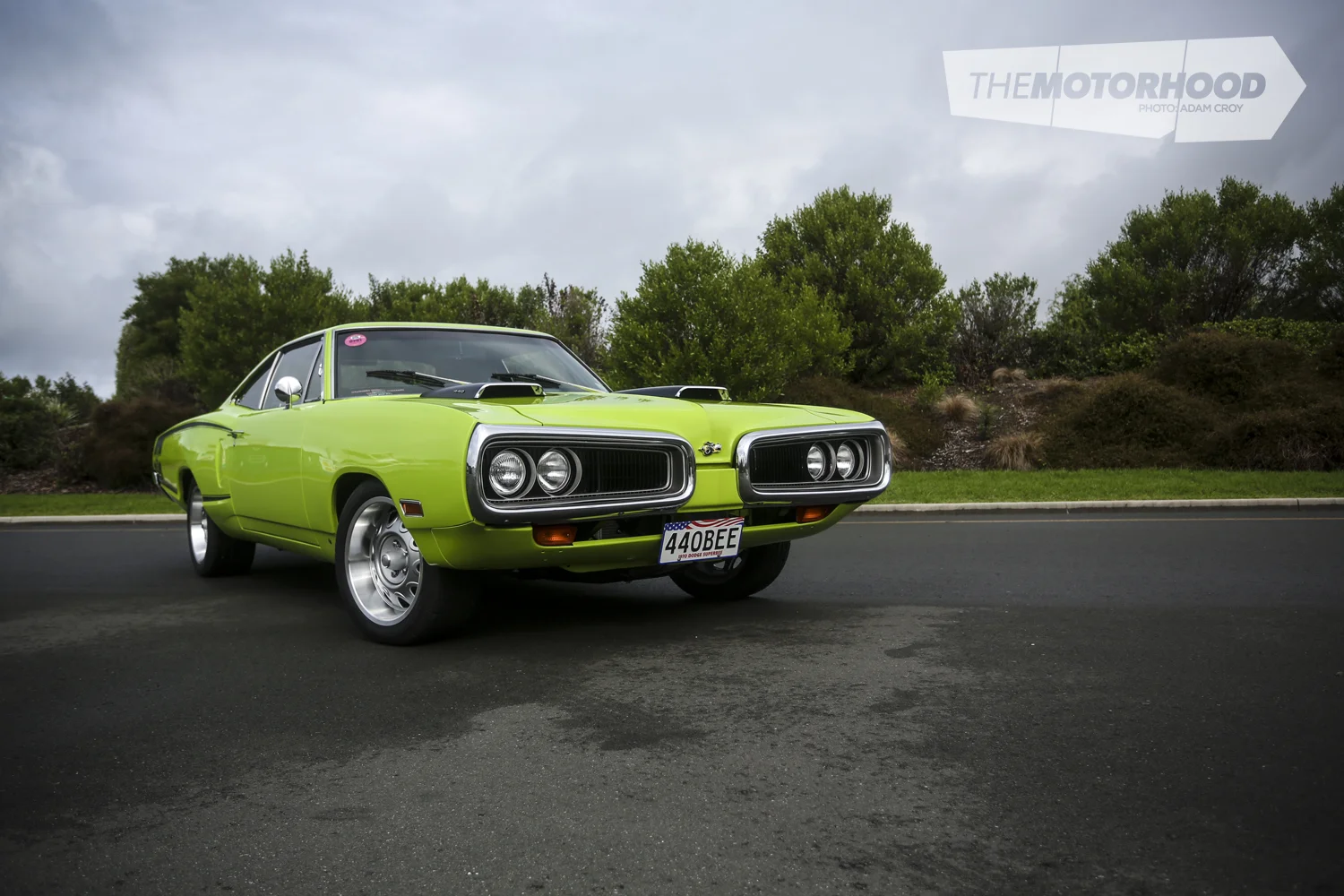 - Engine: 440ci big block Mopar, 0.060-inch overbore, 9.5:1 compression ratio, factory cylinder heads, mild cam, Holley 670cfm carburettor, Edelbrock Performer RPM intake manifold, Ram Charger air box, MSD 6AL ignition, MSD billet distributor, MSD Blaster 2 coil, custom headers, 2½-inch twin stainless exhaust, Flowmaster mufflers, alloy radiator, electric fan