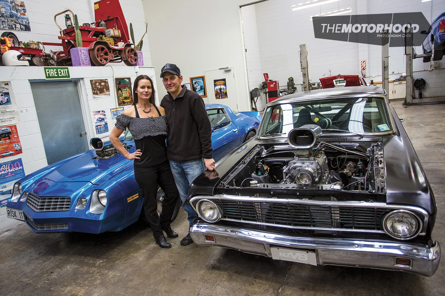 Well, their cars might, mostly, be as loud, powerful, and thirsty as that West Auckland badge requires, but Marty and Zoe Radford’s shed is a class act. Doubling as a home and a workshop, and filled with wares palatable to any real petrolhead, it’s as unquestionably neat as they are.