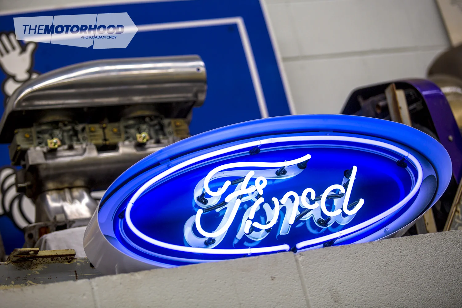 The T-bucket stored up high is Zoe’s baby, and will one day receive the birthday it’s been waiting for. It is actually an old street rod from the ’70s, as the graphics may suggest, and the pair have been collecting bits and pieces for it as they come up. The plan is to fit it with a tunnel rammed 289, and extend the chassis to get a proper sized tray out the back. Having owned two buckets already — one powered by a 302, the other with a monster 429 — they know what they’re after, and hope to get this build under way sooner rather than later.