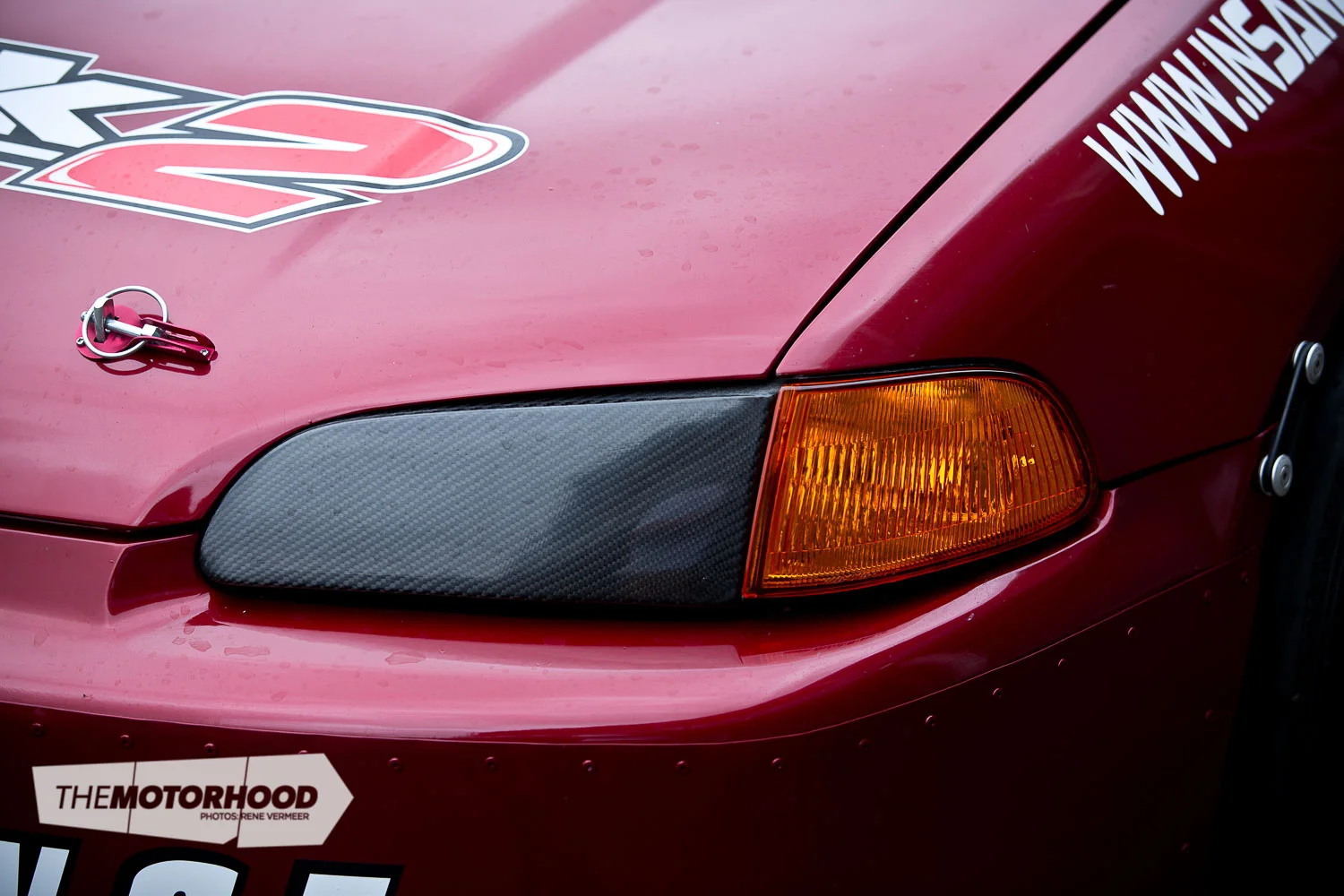 Up front you’ll notice that the factory headlights have now been replaced in favour of a Password JDM carbon-fibre headlight duct and block-off plates with amber corner lights. Although not WOF-spec, it does provide the coolest of air into the high-revving B18CR.