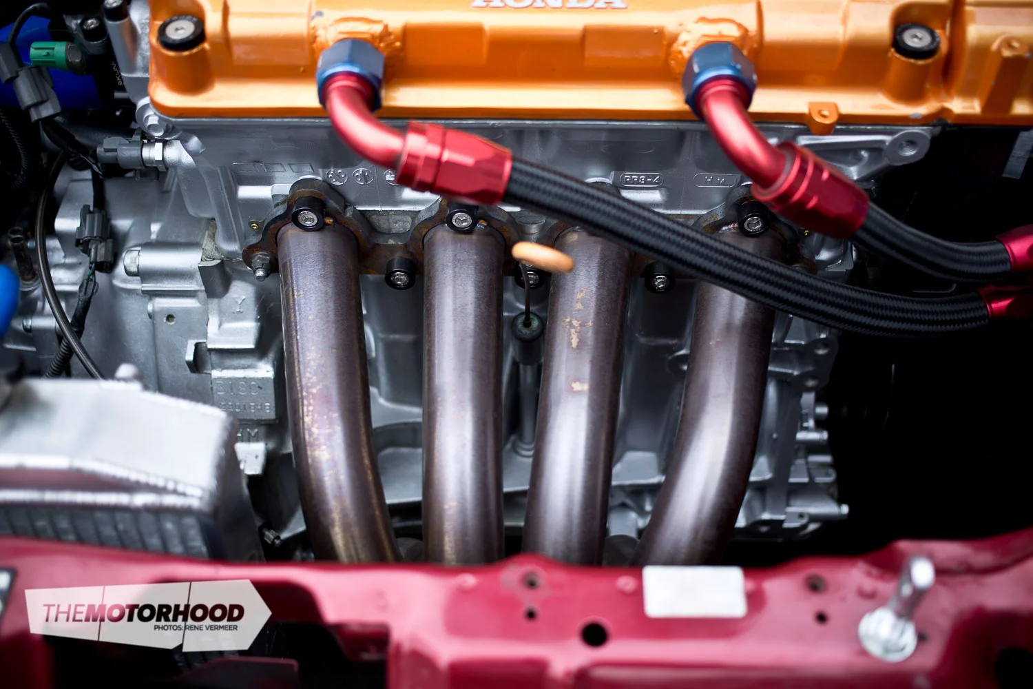 Power comes courtesy of an array of components, including a set of custom PLM 4–1 drag headers, Skunk2 intake manifold, 70mm S90 throttle body, custom ram intake, an MSD ignition, and the Hondata S300 ECU.