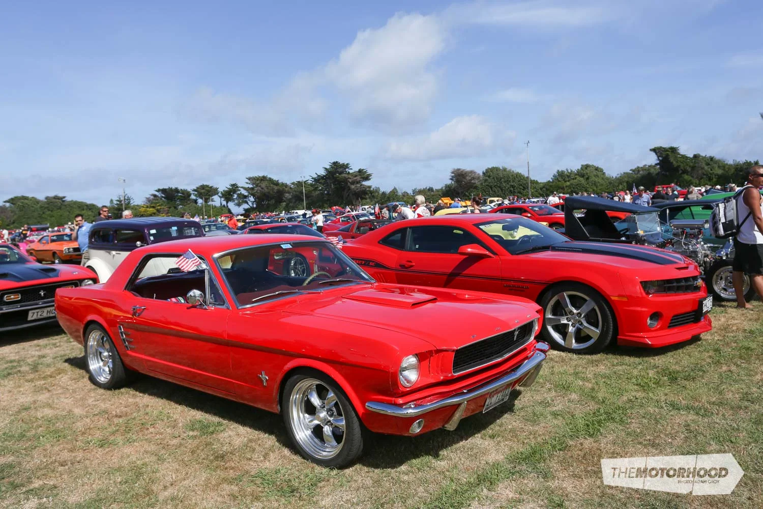 Stopping by Opunake, the huge Americarna procession gathered in the local sports field, and as with the Inglewood event, the number of cars was impressive, as was the work that must have gone into arranging a park-up of that scale. With the huge number of cars came a large variety — just about any style of vehicle imaginable was there.