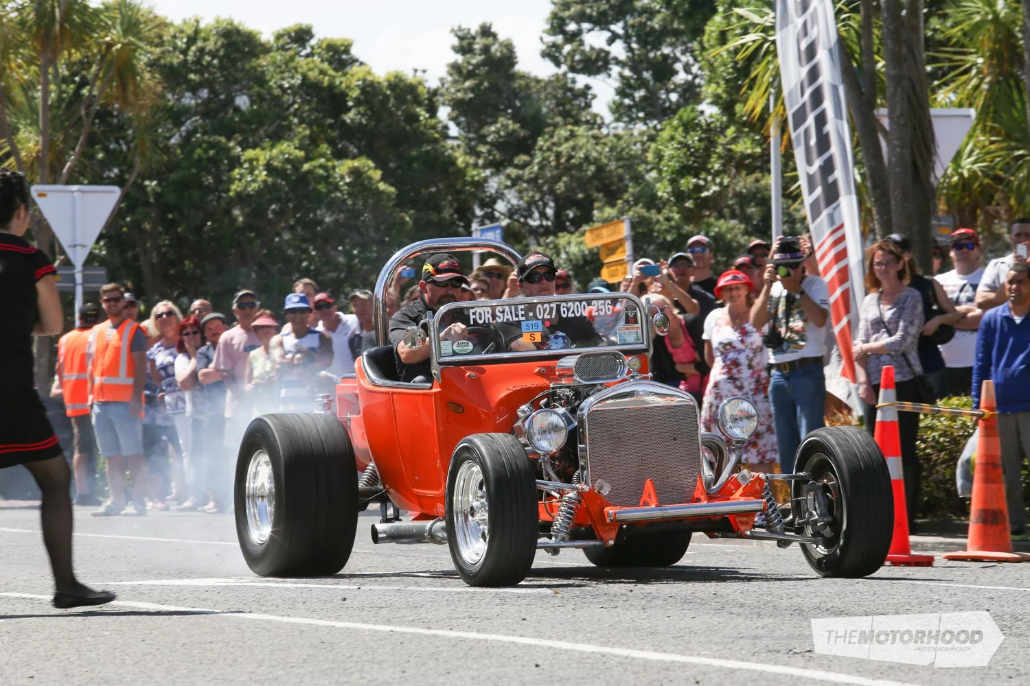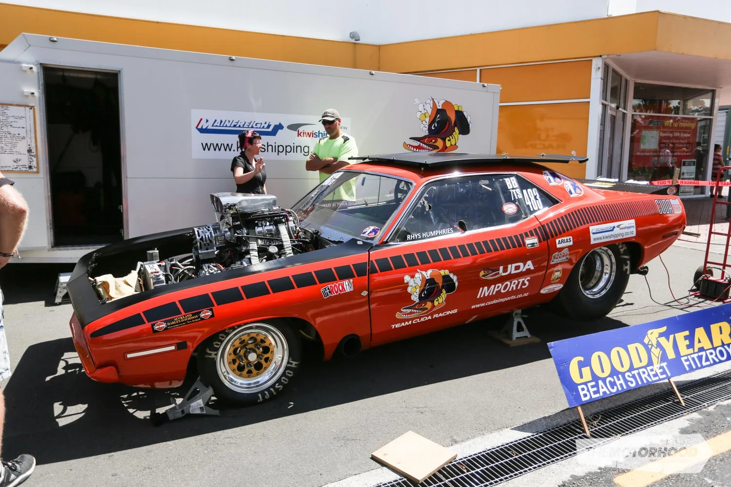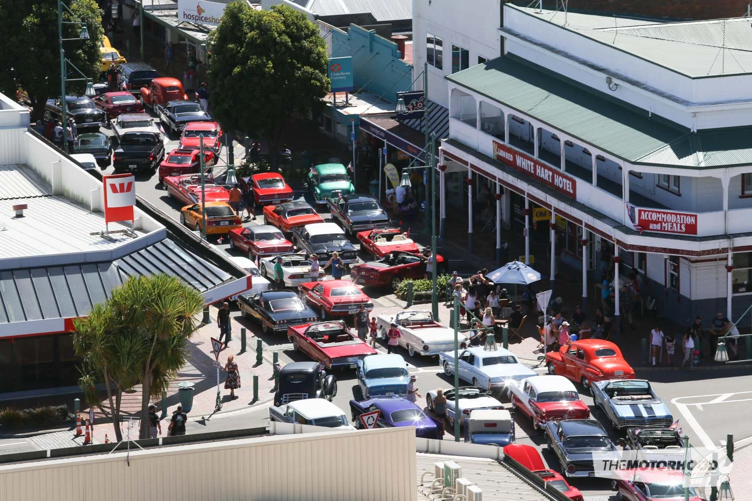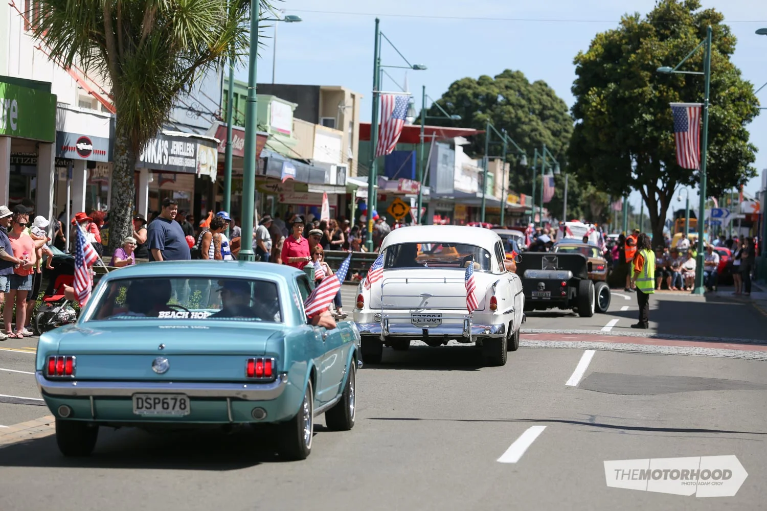 The stop at Opunake was a brief one, and the convoy was soon back on the road, Hawera bound. Just like with Inglewood, Hawera’s main drag was to be filled with the large Americarna line-up, but with an added bonus — the Go–Stop. Giving entrants the chance to blast down Albion street at flag-drop, and brake to a halt within the braking area about 100m away, the Go–Stop promised some entertaining viewing for the day.