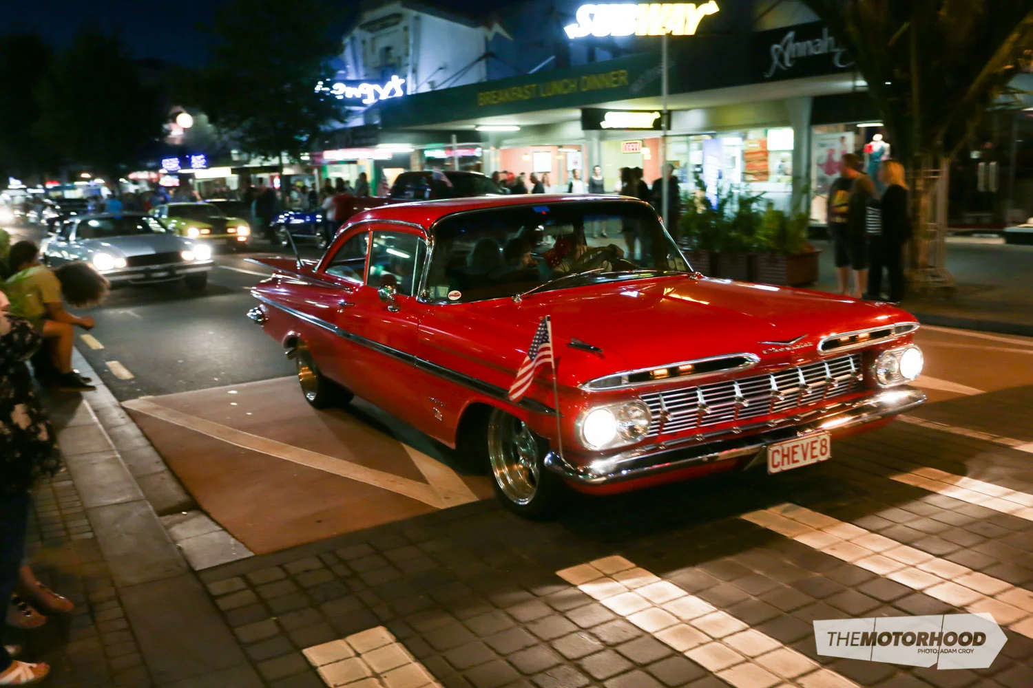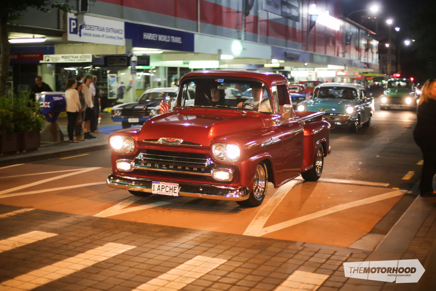 With the afternoon well spent at Hawera, the evening saw the group head back to New Plymouth, to take part in the night cruise around the CBD’s closed-off streets. The Americarna programme called it, ‘Friday night cruising, American Graffiti style’ and that really is the best way to sum it up — the procession of cars traipsing down New Plymouth’s main drag really was reminiscent of how it might have been in a city centre on a Friday night, in a simpler time. The cars constantly cruising by provided a dynamic environment for the lazy amongst us, who didn’t even have to move to see different cars, but wandering around the city centre revealed fine machinery all over the place — from main-road parking spaces through to cosy side streets.