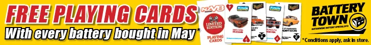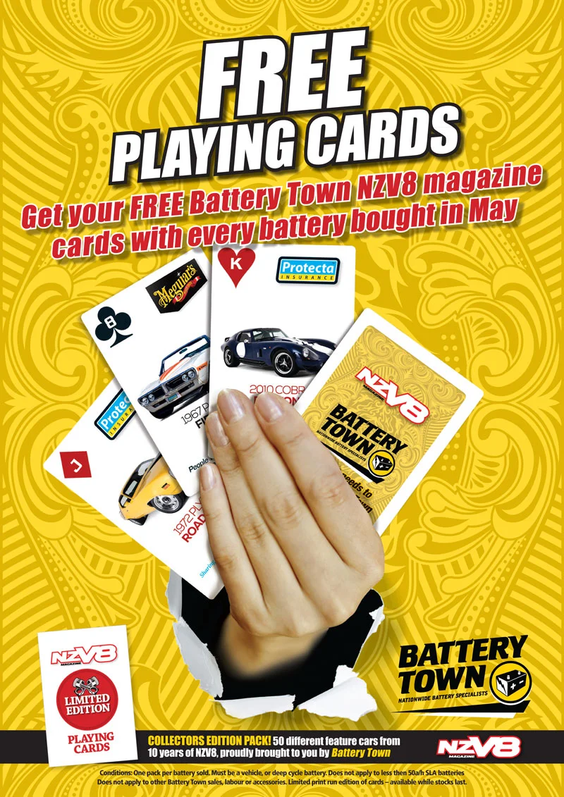 Get your free pack of Battery Town NZV8 playing cards with every vehicle battery sold during May