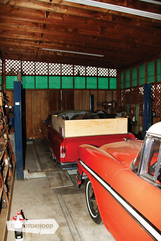 Inside the shed is a very cool bar setup, although usually the main area of the shed is used for drinking and talking crap, with a well-worn seat in the corner being Squeak’s usual spot. With the high temperatures in the area, it’s too hot to work on cars inside over summer, so a lean-to outside doubles as a great workspace-come-storage area. While we were there, and as is usually the situation, this area was full of other Kiwi’s vehicles about to make the journey back to New Zealand.