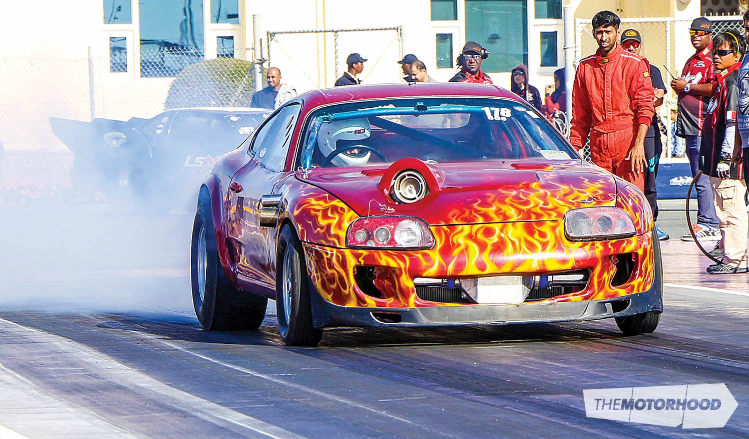 To cater for the growing import-racing scene in the Middle East, a heads-up division for Japanese-powered, small-tyre cars is contested within the Super Street 6 bracket. Presently dominated by Toyota 2JZ powerplants, these engines are transplanted into everything from Nissan GTRs through to Foxbody Mustangs and early model Datsun 240Zs. In this ADRL series, the bracket hosted 25 entries. The quickest was Bahrain’s giant-killer Mohammed Haji, driving his GTR, who went as quick as 4.450 and 171.95mph. He ended the series with a win over the Ivan Pavlovic–tuned Al-Anabi Supra entry of Nasser Al Suwaidi.
