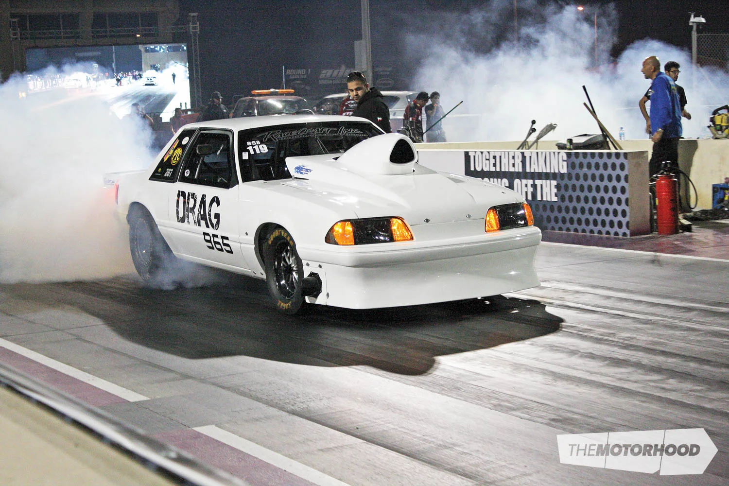 Fifteen cars made the call in SS8 for their three-week racing vacation at QRC, with a performance of 4.237 and 191.87mph tripping the beams as a new record and best for the ADRL. This came from Kuwait’s Abdullah Khudadah in his home-built back-half ’91 Foxbody. To say the team was happy with the achievement would definitely be an understatement — emotions certainly ran high for the low-budget team, who work out of a glorified tin shed with no home track to play on. For those quarter-mile purists who refuse to do the 1.54 conversion multiplication, Khudadah’s twin-turbo BB Ford would scorch the traditional distance in 6.52 if he drove it full length and out the back door.