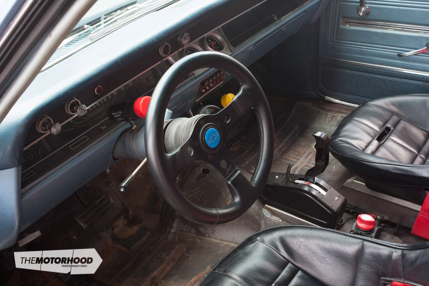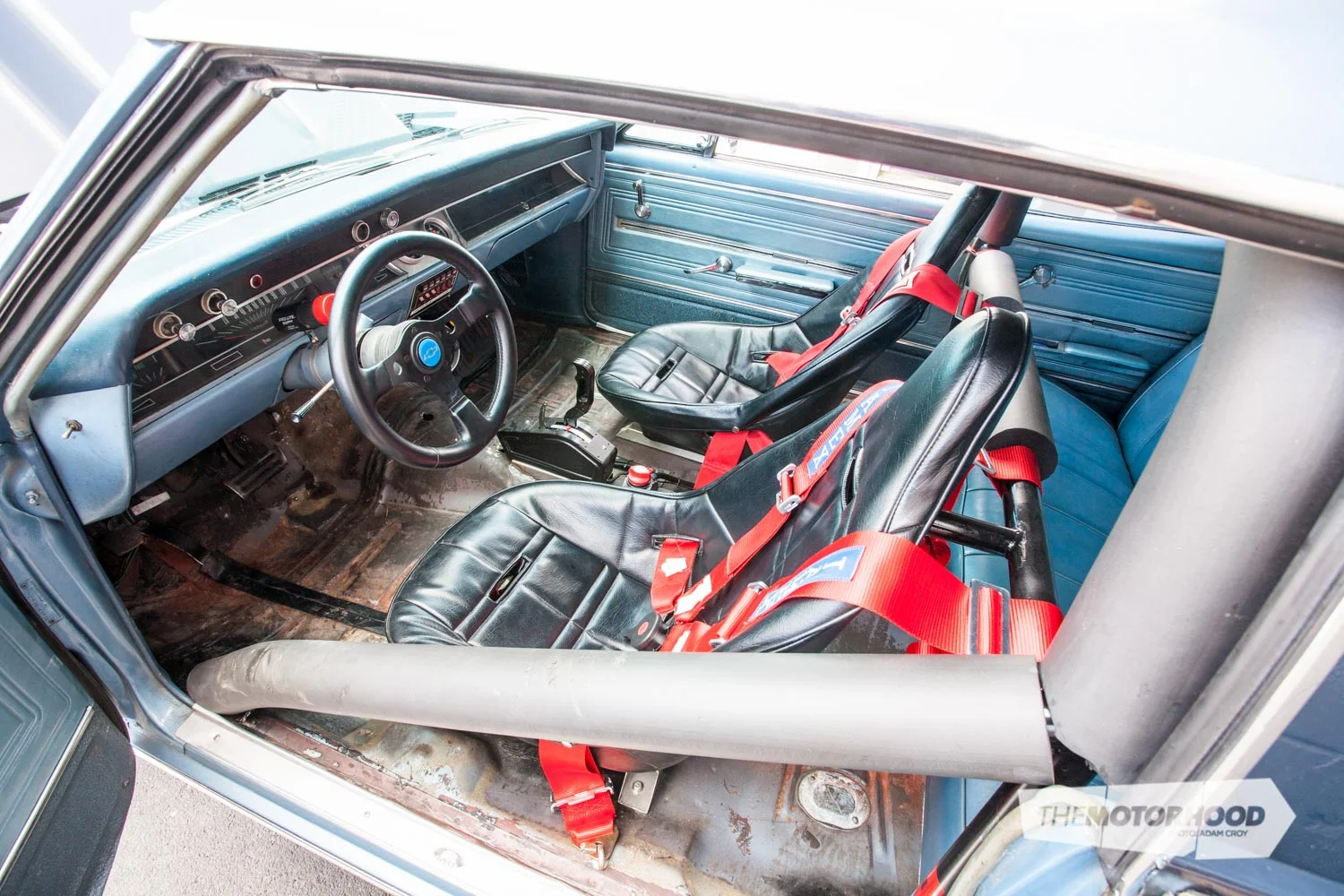 - Interior: RCI bucket seats, Jamex five-point harnesses, B&M ratchet shifter, five-point cage, Auto Meter gauges