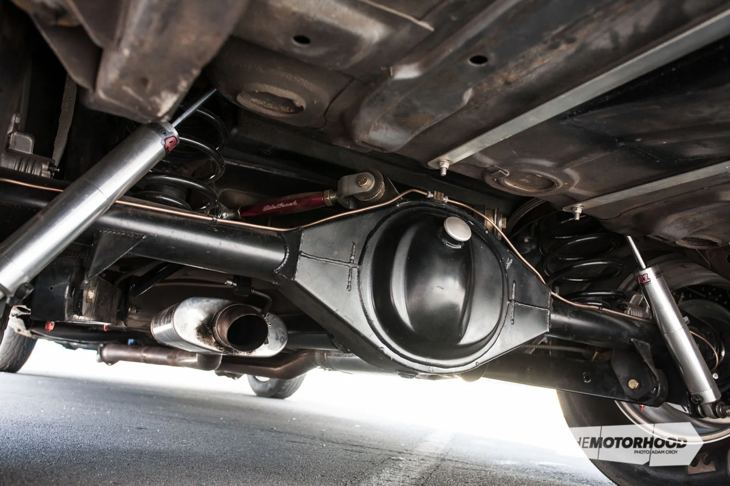 - Suspension: QA1 coil-overs, Edelbrock rear trailing arms, adjustable upper control arms, Global West coil springs