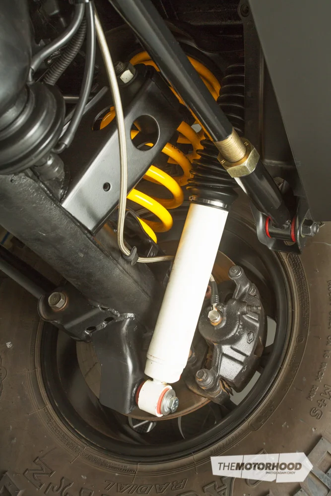 Jono’s first tasks when building the Hilux was the chassis. He cut the rear half off and replaced it with a four-link rear from a 1998 Toyota Surf, to deliver much better suspension movement in the rear compared to the old leaf-sprung design. Combine this extra travel with a set of King Springs and Rancho RS9000X shocks, and you have something capable of climbing boulders. Late-model four-pot Toyota Hilux calipers were bolted up the front and Nissan Patrol items installed down the back, which came at a cost, as Joel told NZ Performance Car.