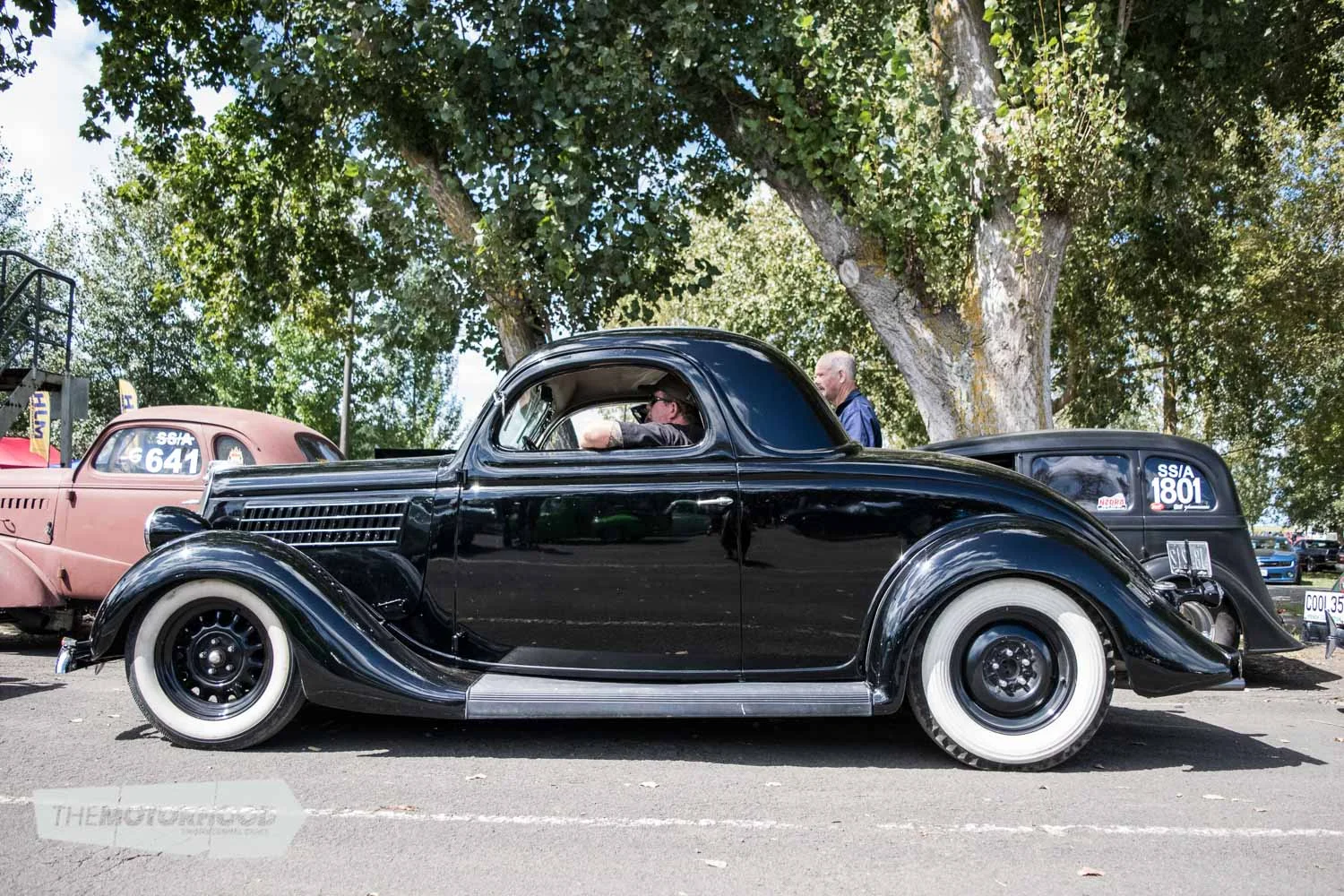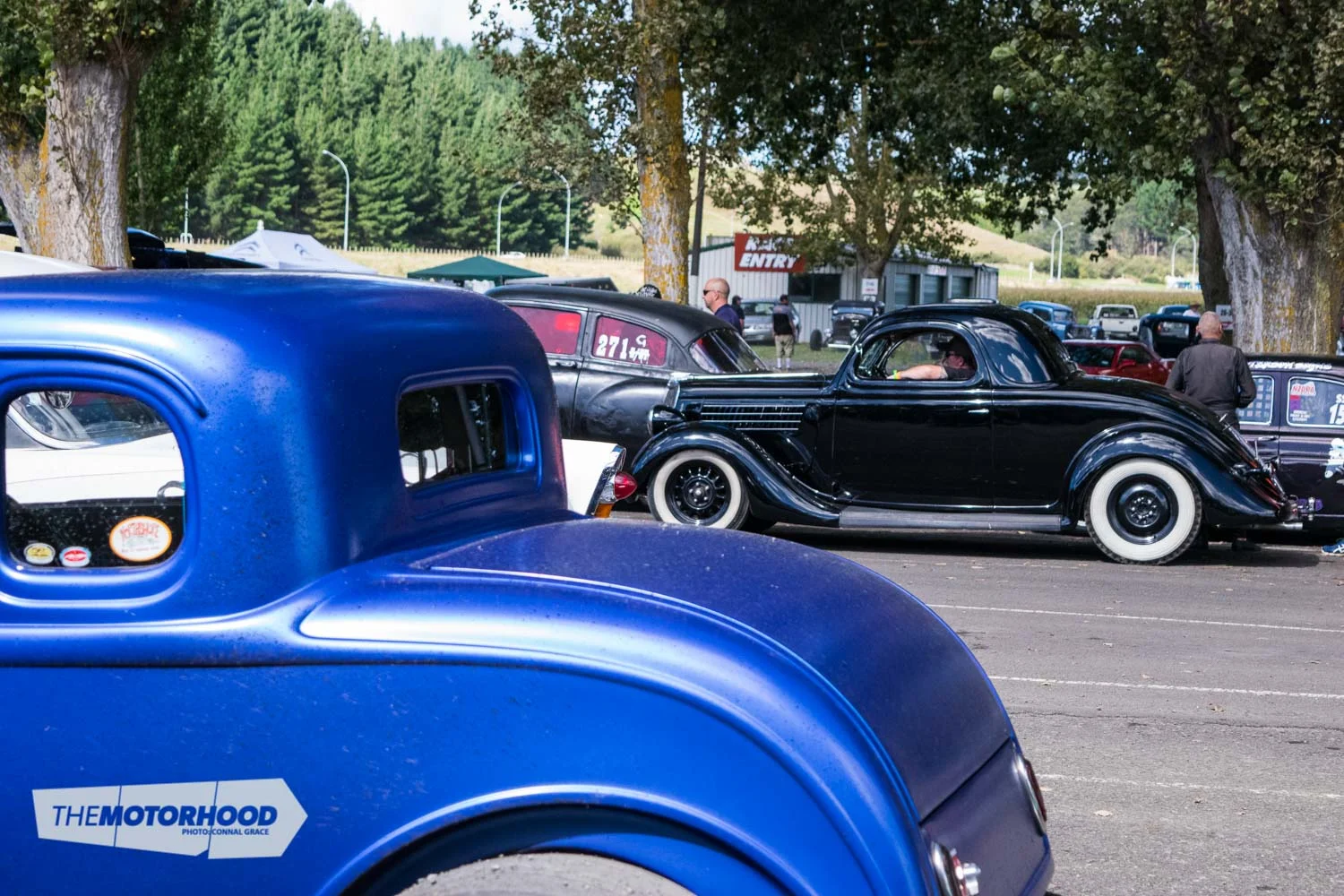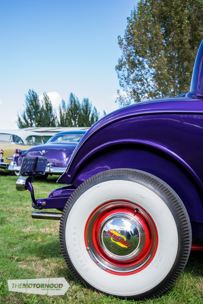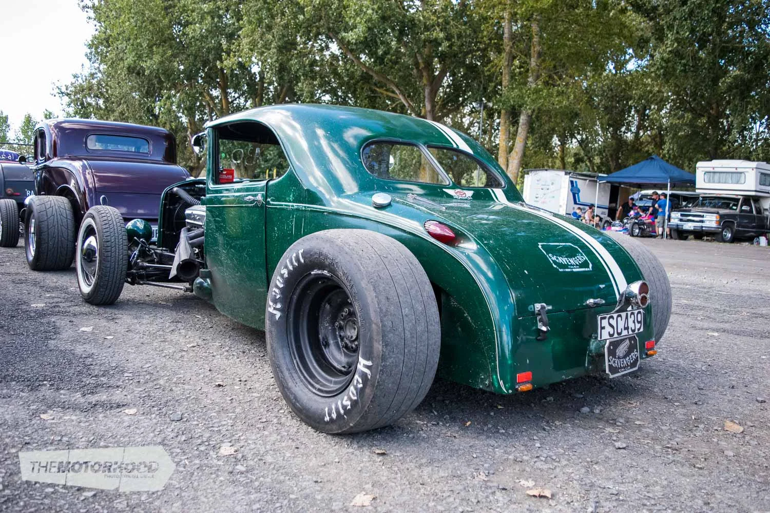 And then there are the hot rods … where do you even begin? A good starting point could be the sweet Model A duo parked in the shade of the pit area; the roadster powered by a SCOT-blown flathead, alongside the clean and simple chopped Tudor.