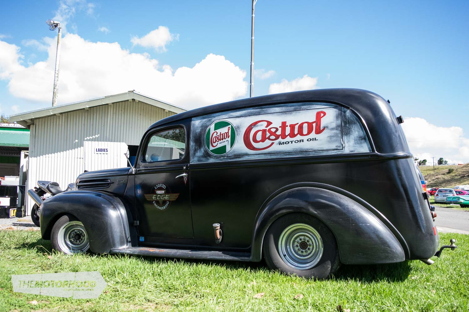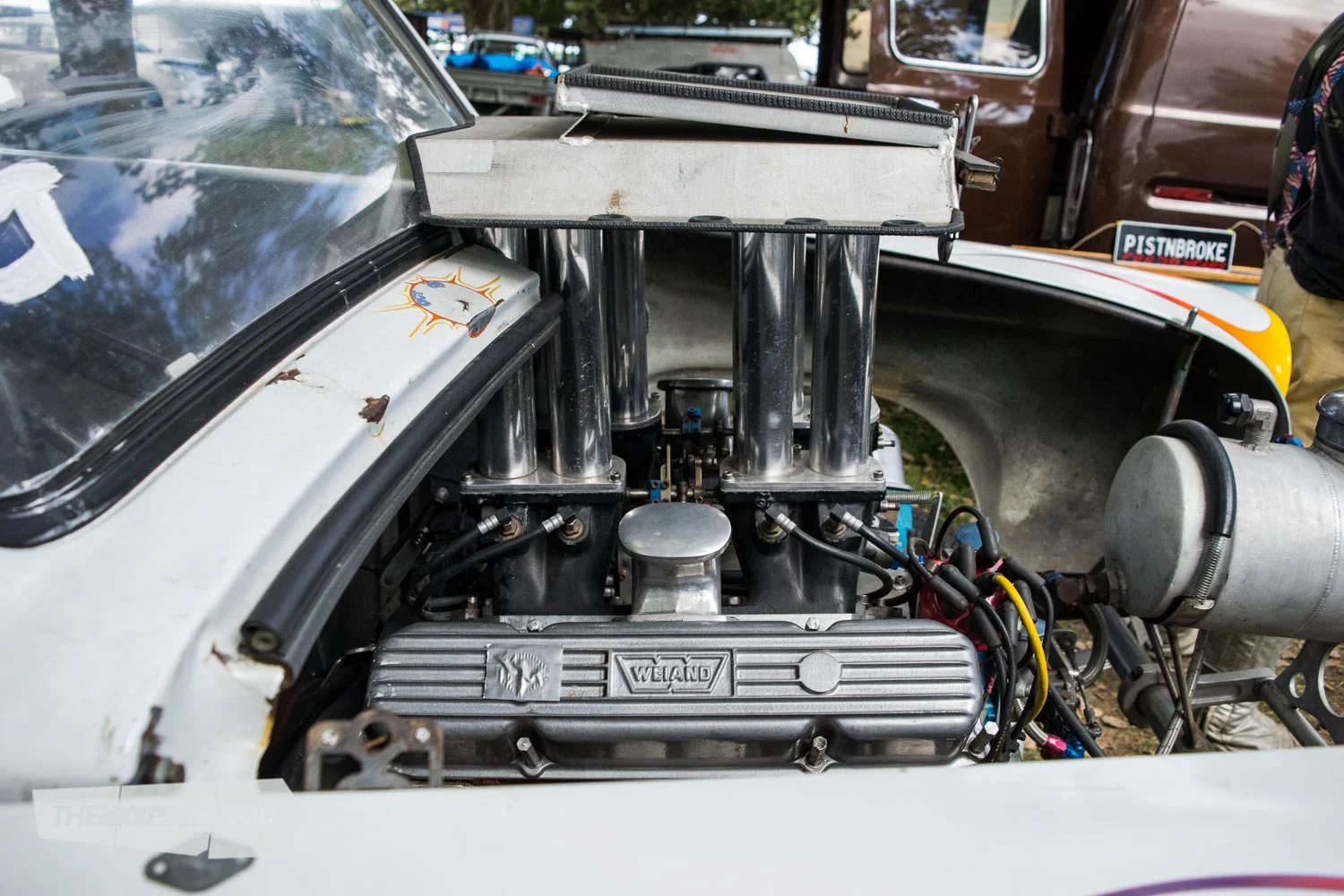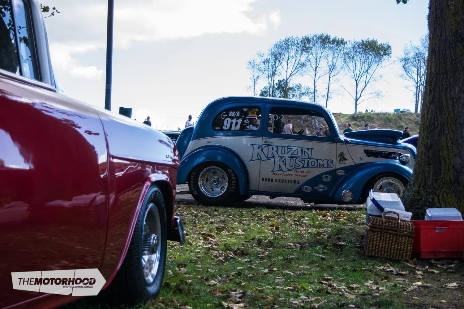 And then there are the hot rods … where do you even begin? A good starting point could be the sweet Model A duo parked in the shade of the pit area; the roadster powered by a SCOT-blown flathead, alongside the clean and simple chopped Tudor.