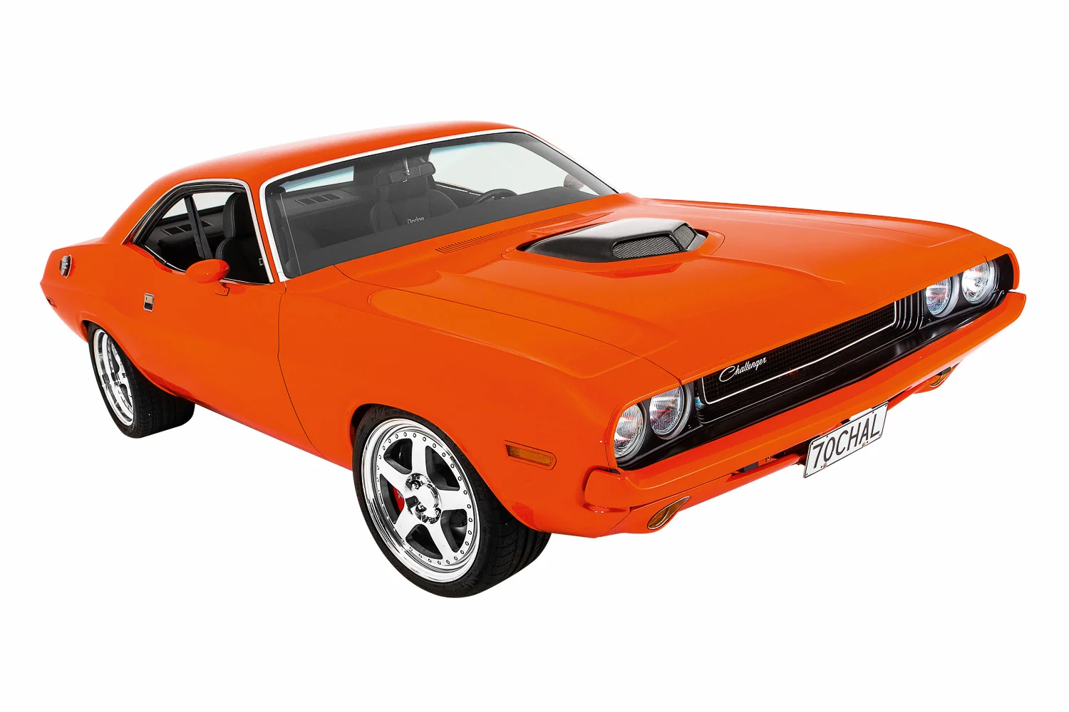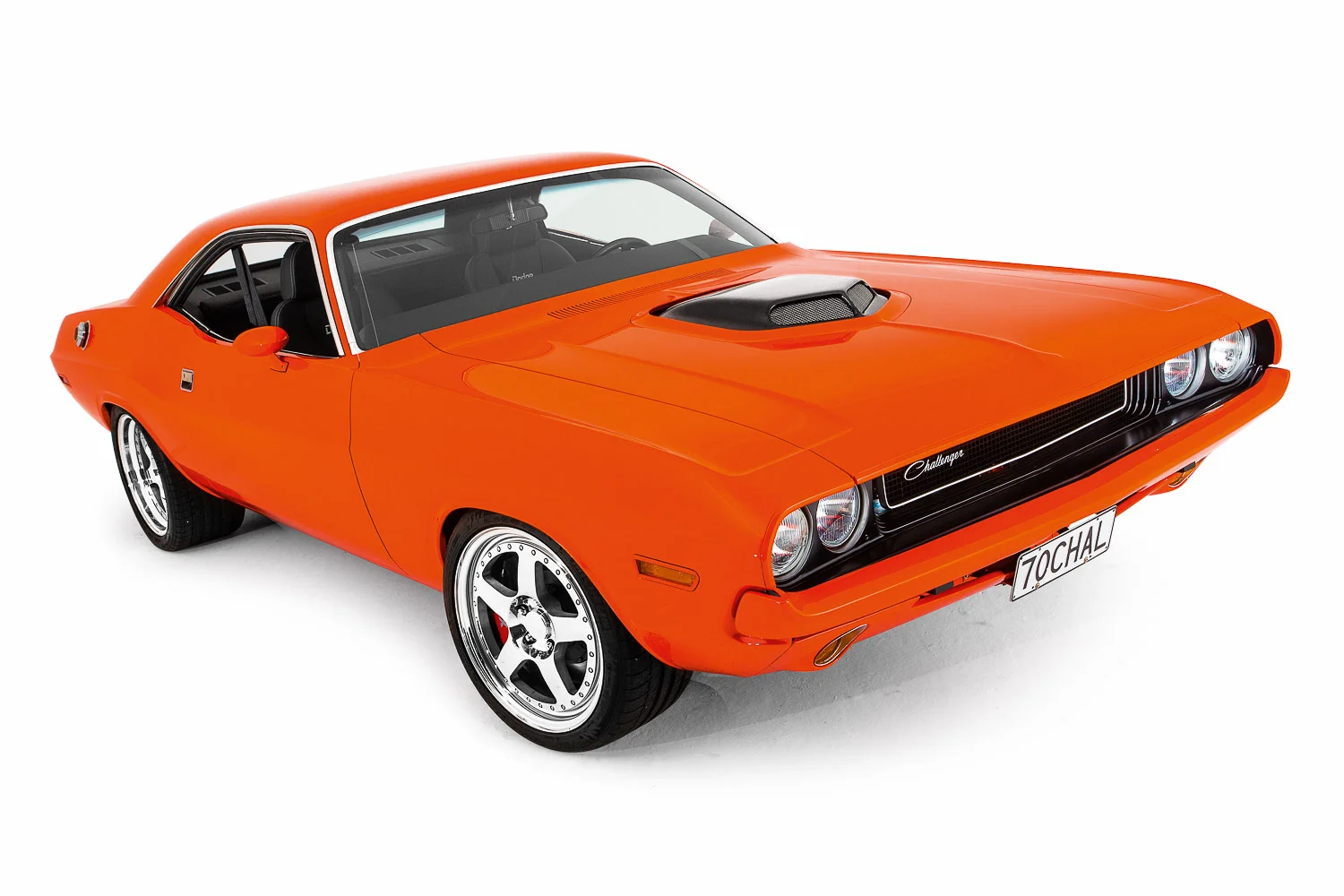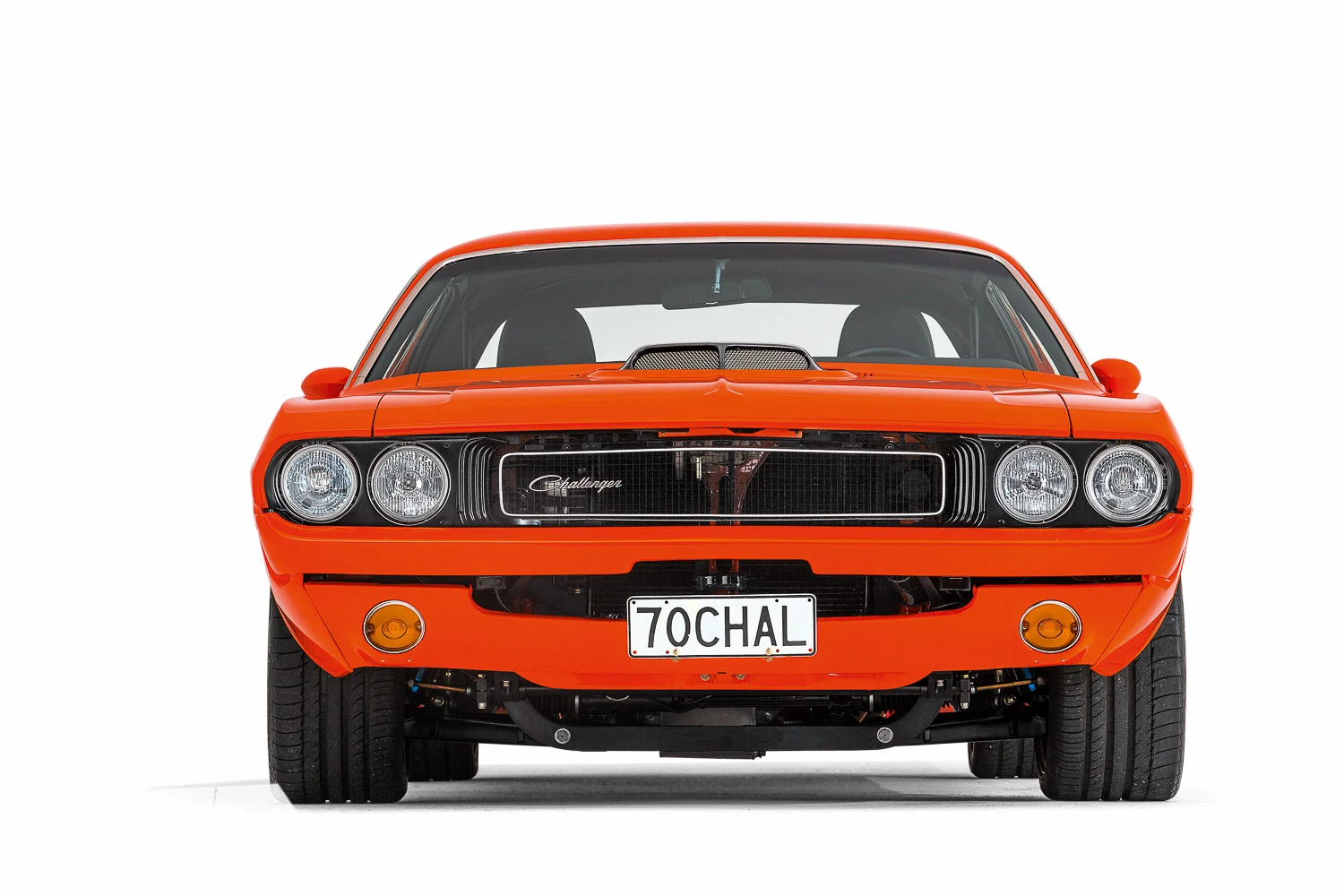 - Exterior: Customized Hemi orange PPG paint, painted bumpers, carbon-fibre shaker scoop,