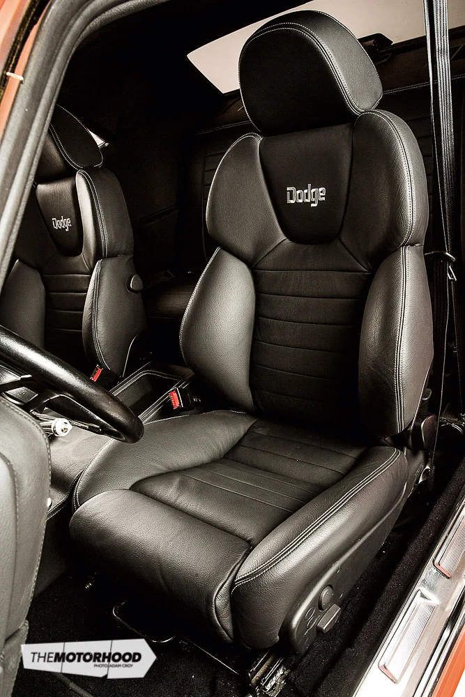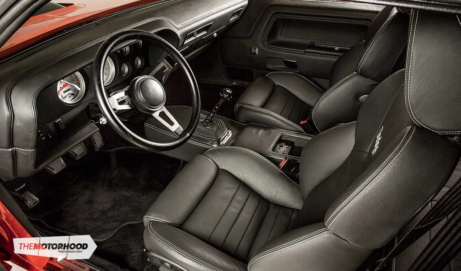 Like that of the demo car, Phil’s motor was a brand-new Hemi, the difference being that his motor was increased in capacity from 6.1 litres to 7 litres (426ci). While the car was never to be a track weapon, the intention was always to build something that could hold its own against most late-model cars on the open road, and every extra bit of power would help. Of course, the exception was that it mustn’t have too aggressive a cam profile, as it must be able to handle daily driving duties with ease. With that in mind, the team at Sean Hyland built the motor with a forged rotating assembly, held together by ARP fasteners, and dropped in one of their medium-spec camshafts. Up top, they fitted an Accufab four-barrel throttle body, which receives fuel from billet rails, and an in-tank fuel pump. Wanting to have something truly his own, Phil changed things when it came to picking an intake set-up, and decided upon a great-looking carbon-fibre shaker scoop, as opposed to the T/A scoop on the demo car.