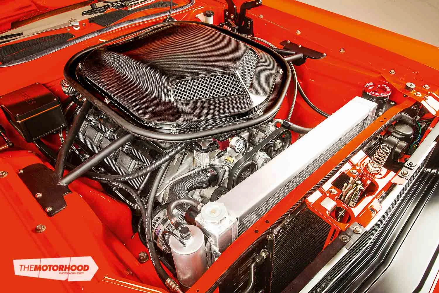 - Engine: 426ci Chrysler Hemi, 6.1-litre block, custom XVM manifold, Accufab throttle body, billet fuel rails, FAST ECU, XVM headers, twin 3-inch stainless exhausts, Magnaflow mufflers, custom alloy radiator, twin electric fans