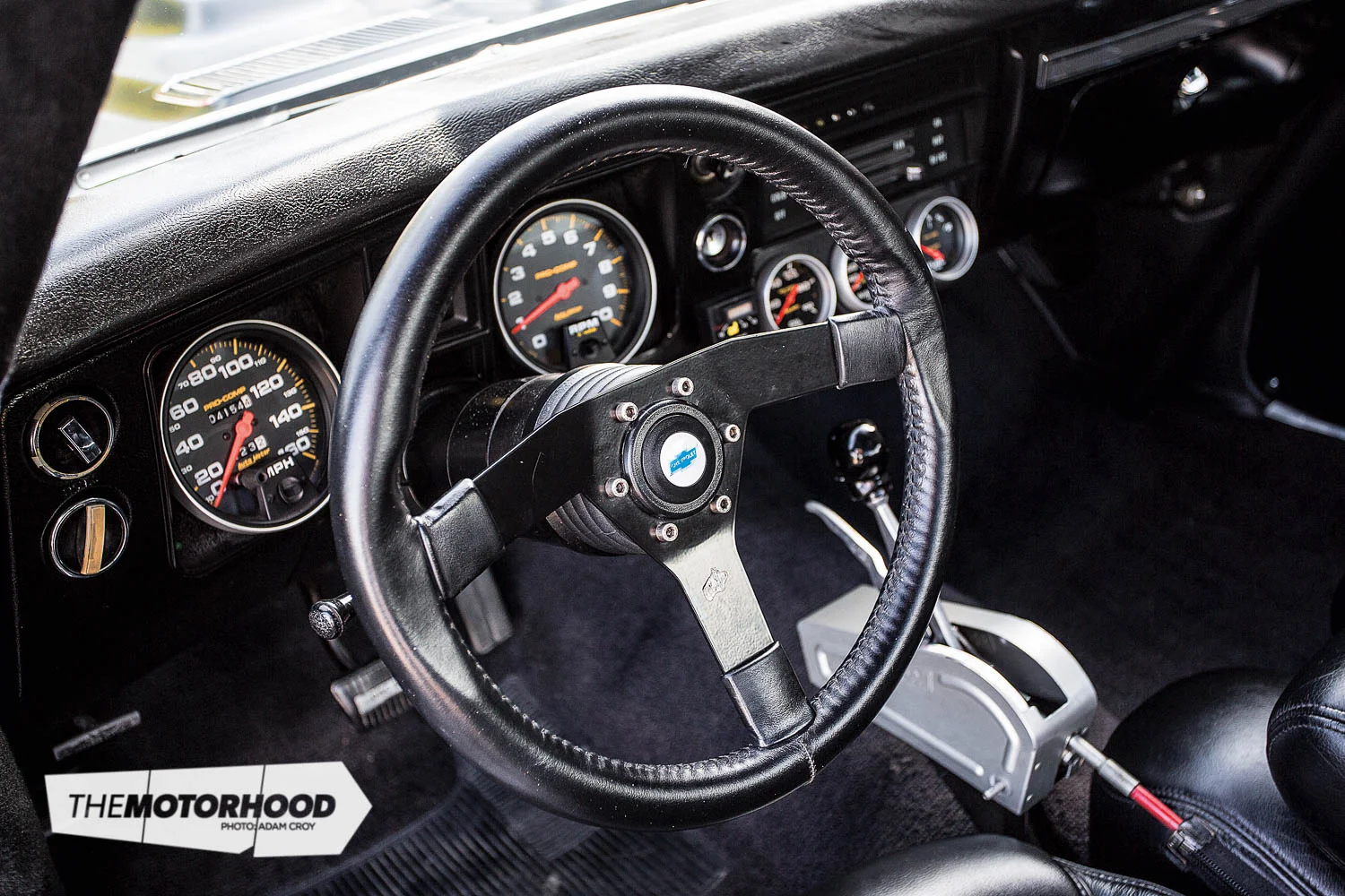 Interior: Full custom re-trim, roll cage, Auto Meter gauges, B&M shifter
