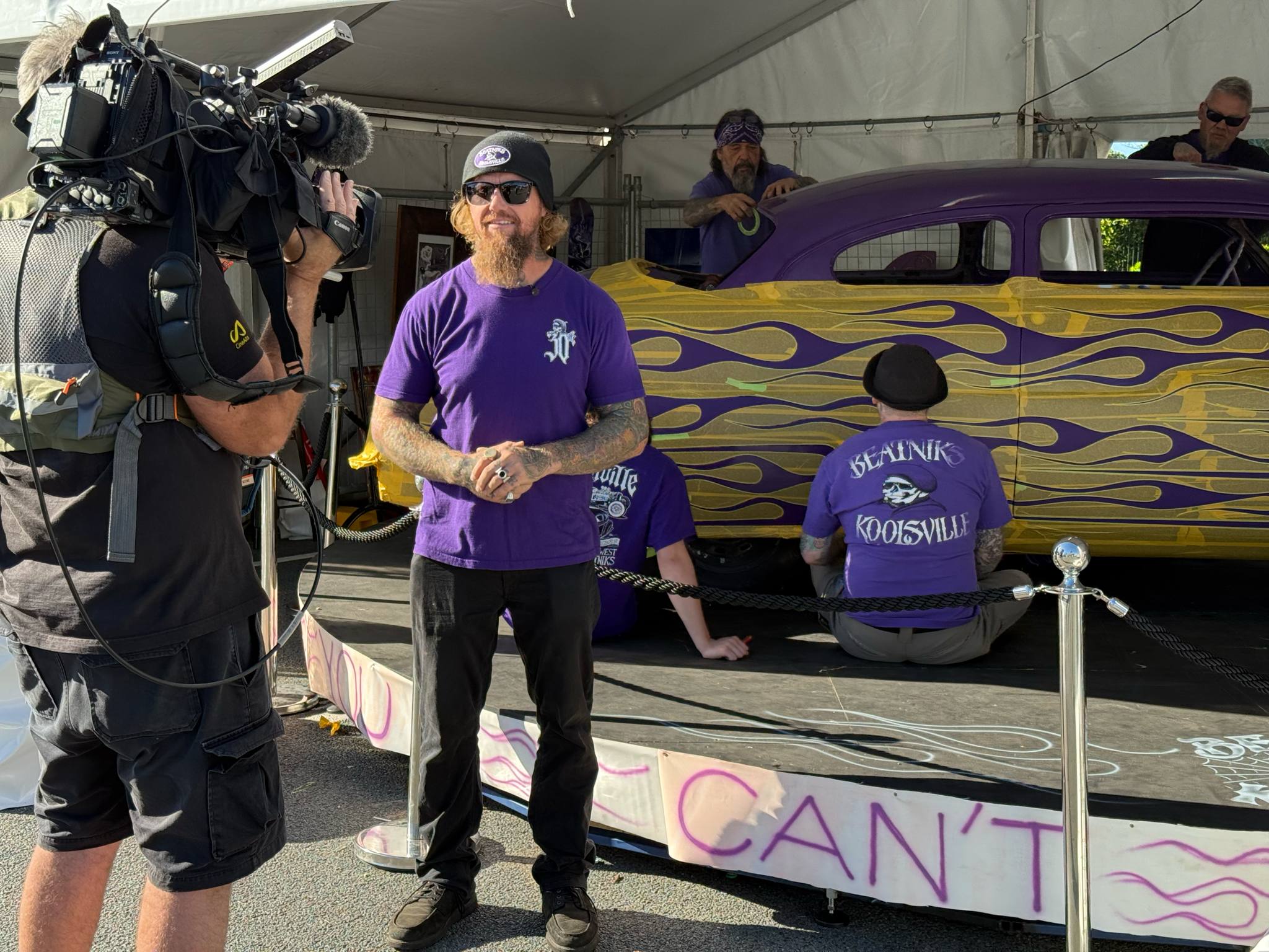 Kustomville is a dedicated kustom-culture precinct operating within Cooly Rocks On. Joel Archard, a Gold Coast builder who runs Deathwish Hotrods out of Nerang, Queensland, has been organising Kustomville for six years. He is a ten-year member of the Beatniks — the US-founded kustom car club and cultural movement — and operates Kustomville under the Kustomville Worldwide banner. Under his direction, the precinct has become one of the most discussed spaces on the Australian car show calendar.